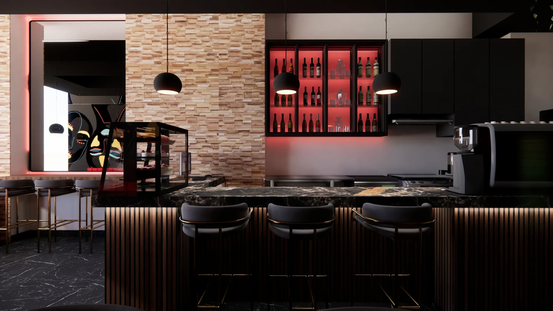 La transformación de este espacio comercial refleja el compromiso de KIRE Constructora con la excelencia en diseño y ejecución. Desde un local estándar hasta convertirlo en un ambiente dual sofisticado que funciona como cafetería de día y bar de noche.